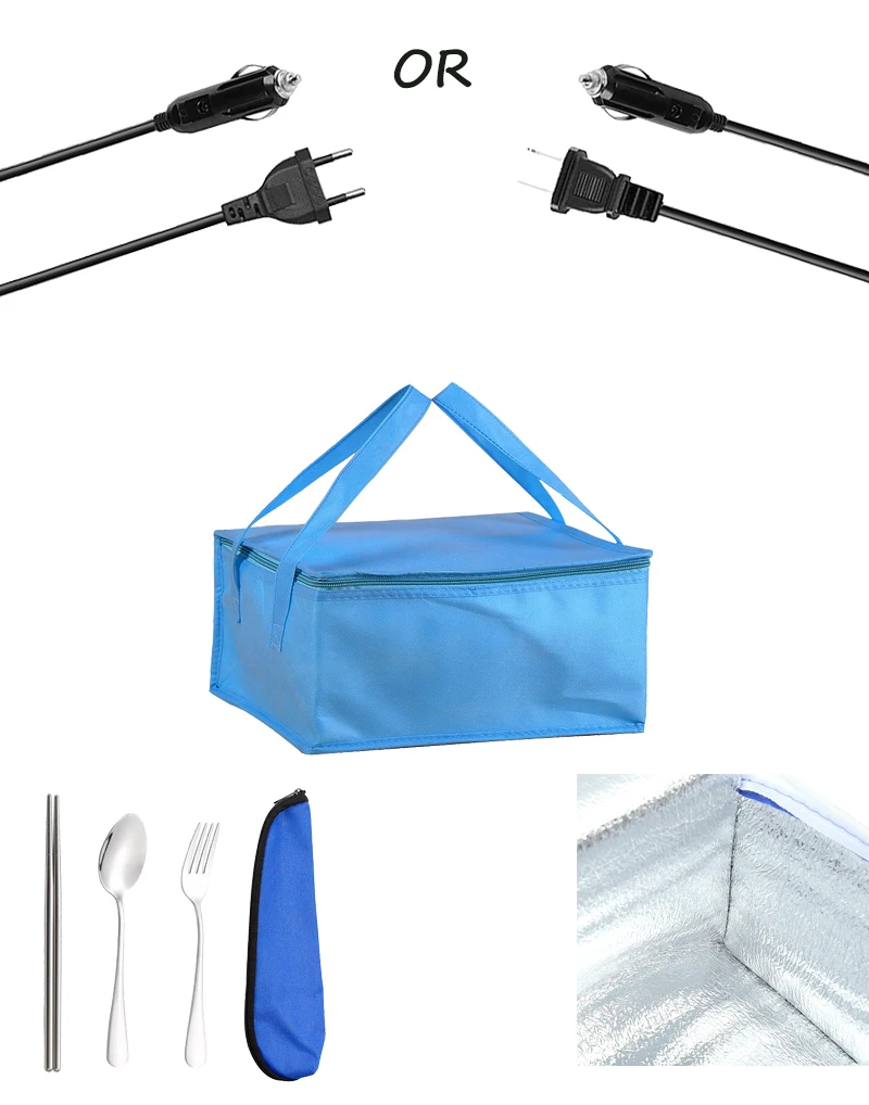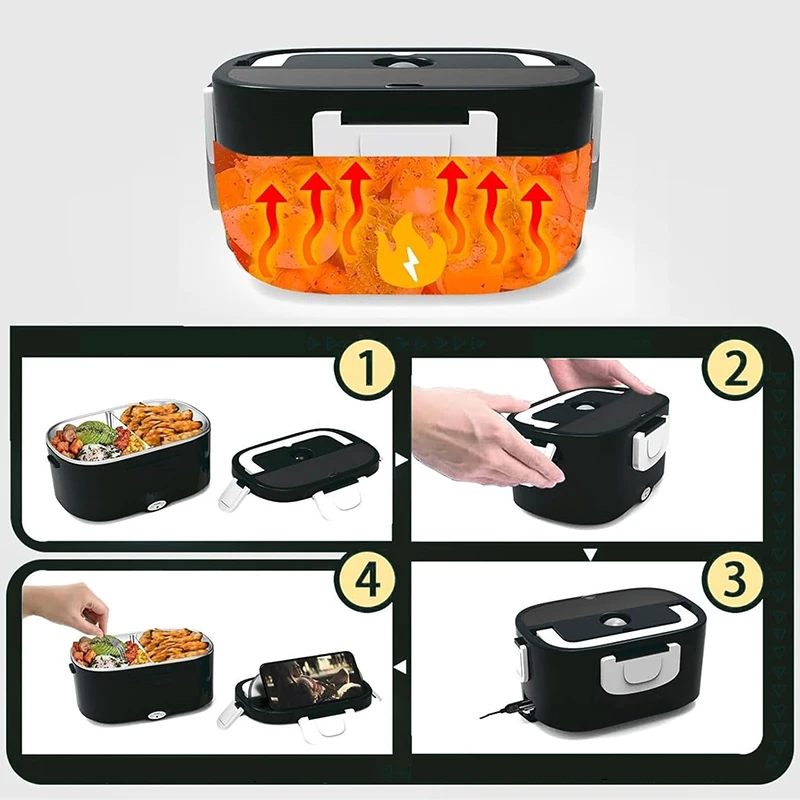 220V 110V 24V 12V 2 in 1 Electric Heating Lunch Box Car Truck Office Food Heater Stainless Steel Food Warmer Container Black Set
