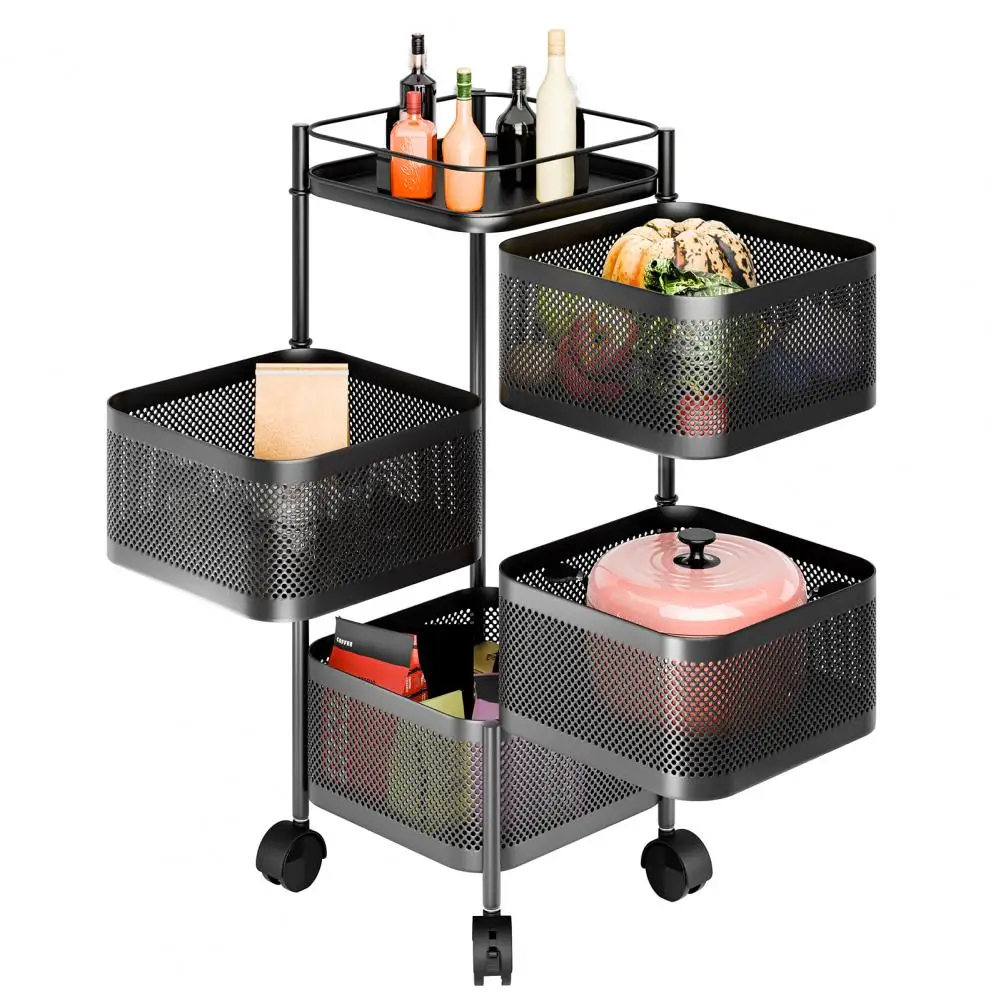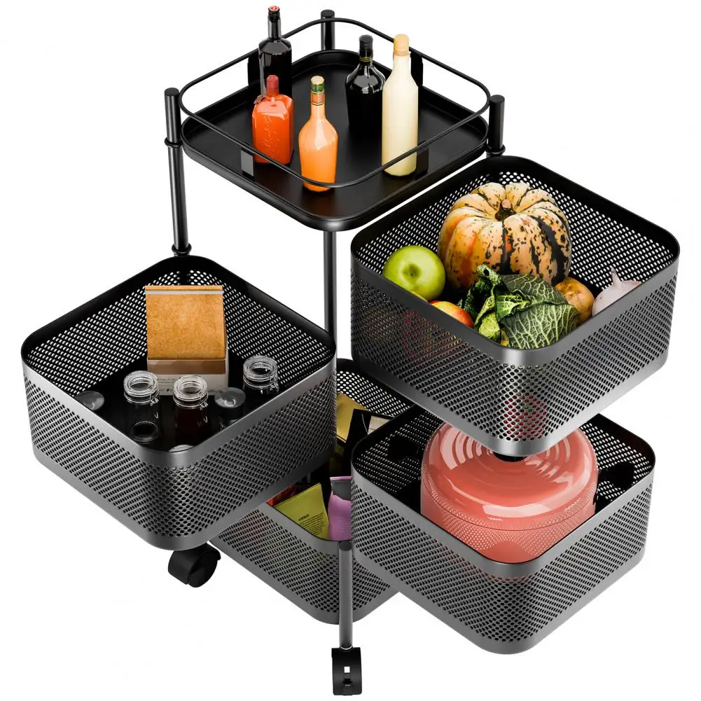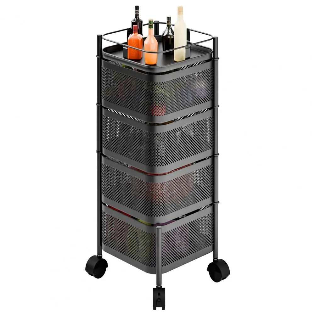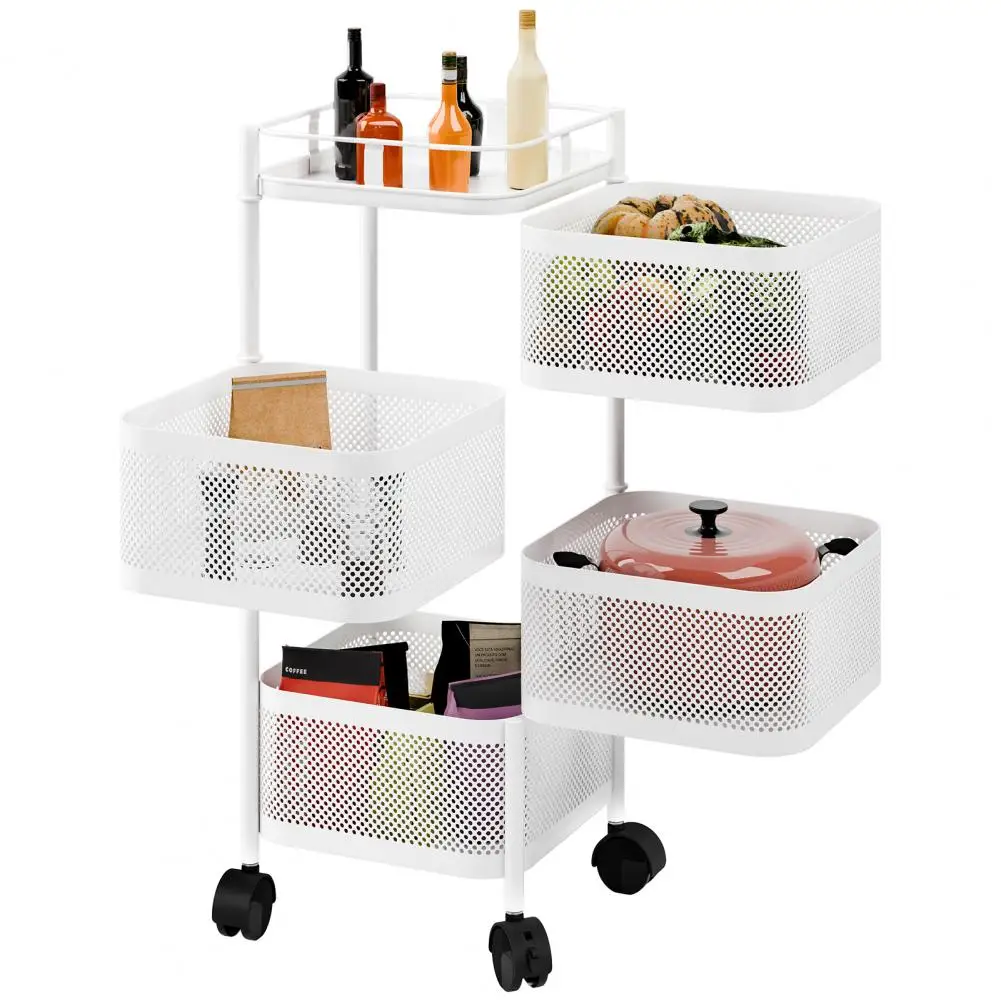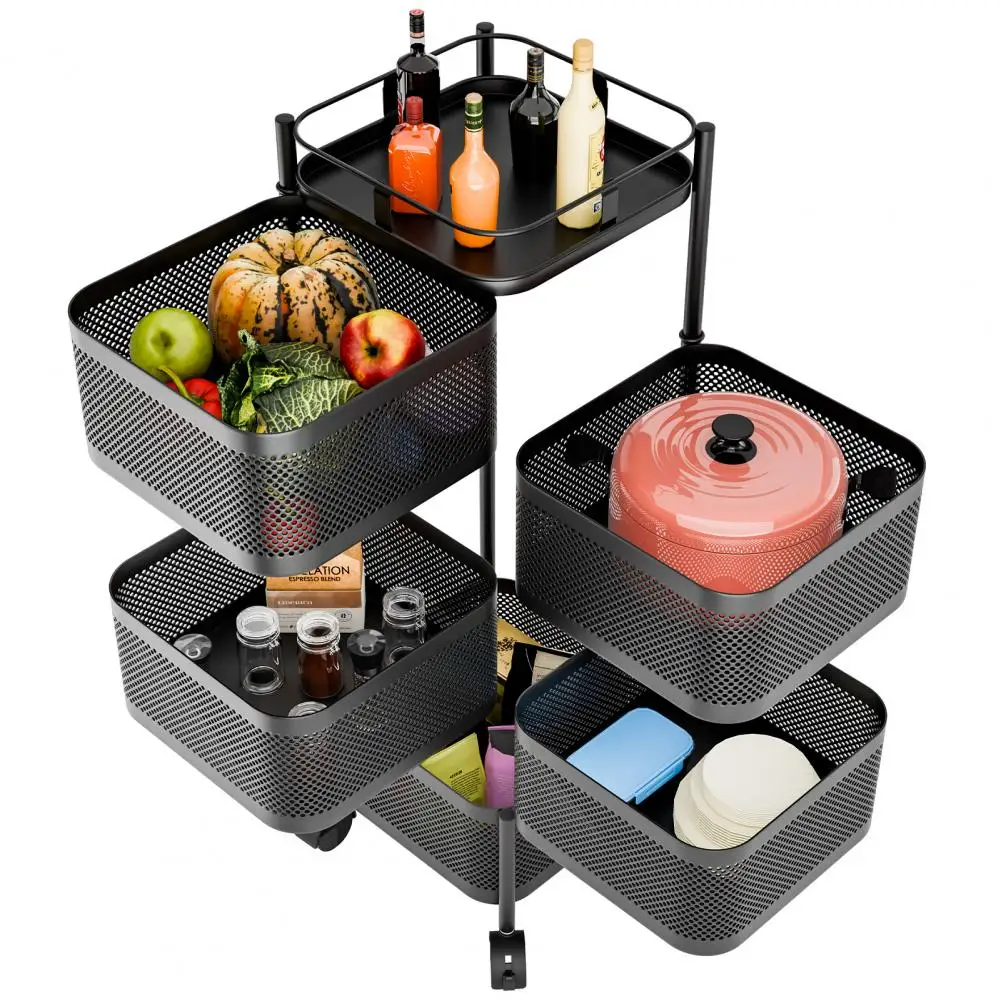 5-Layer Kitchen Trolley on Wheels Kitchen Storage Cart Fruit Basket Storage Container Fruit Vegetable Metal Wire Shelf