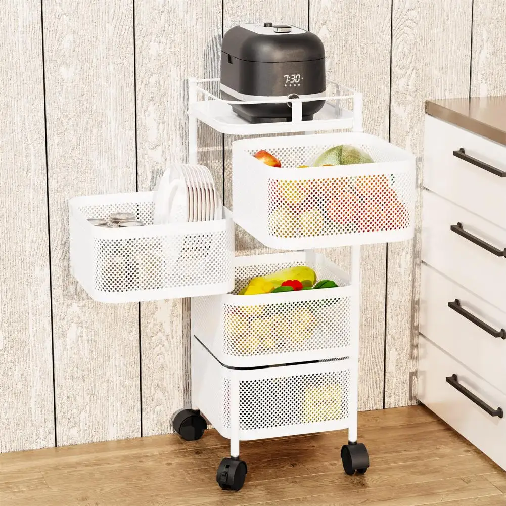 5-Layer Rotating Basket & Hollow Mesh Design: The 5-layer rotating fruit basket design allows you to place or remove items from any direction. The mesh grid design allows air to circulate, ensuring that the fruits and vegetables are ventilated and have no peculiar smell.