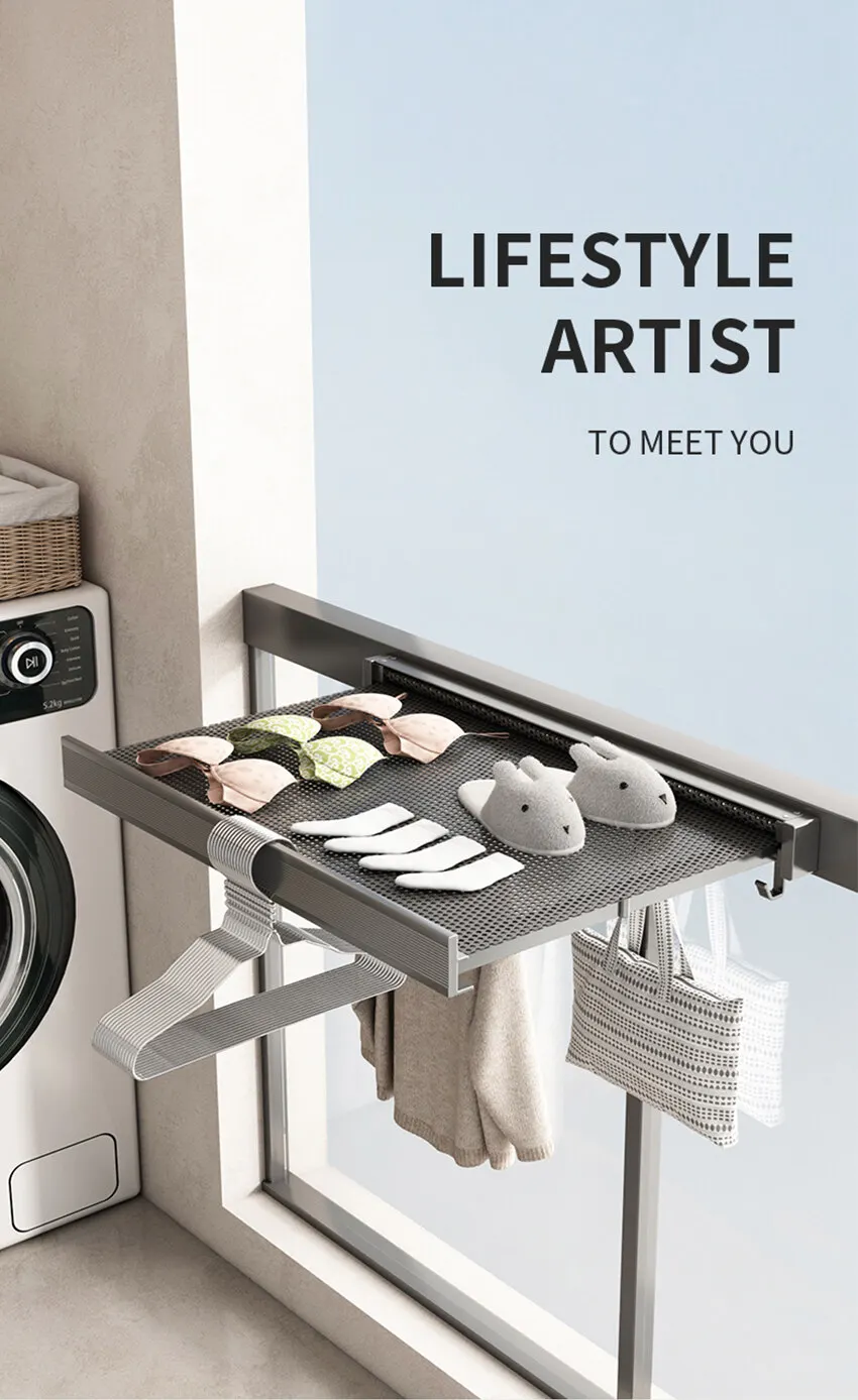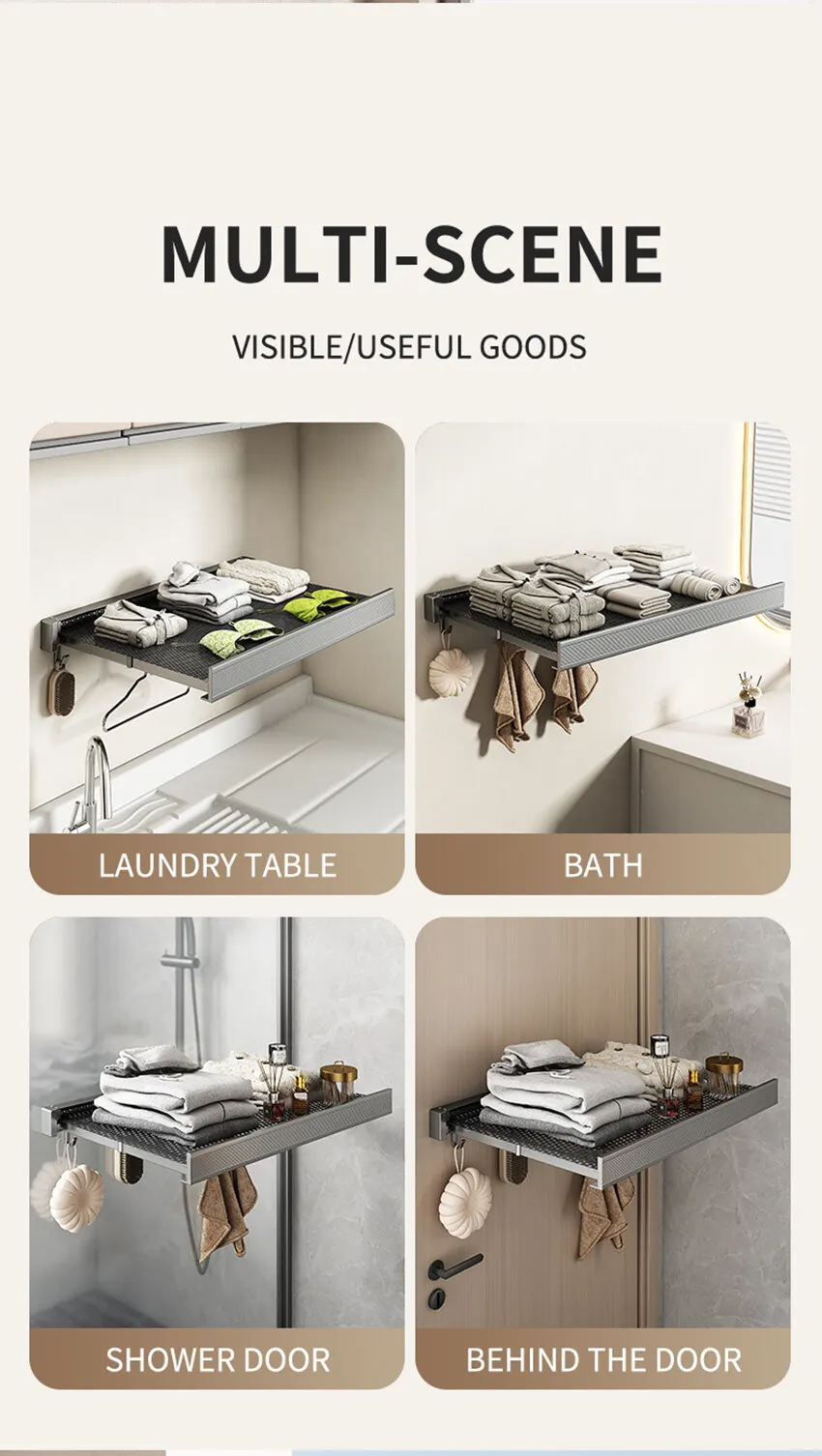 Bathroom Folding Storage Shelf Wall Mounted Aluminum Alloy Retractable Clothes Drying Holder Socks Clothing Drying Rack Hanger