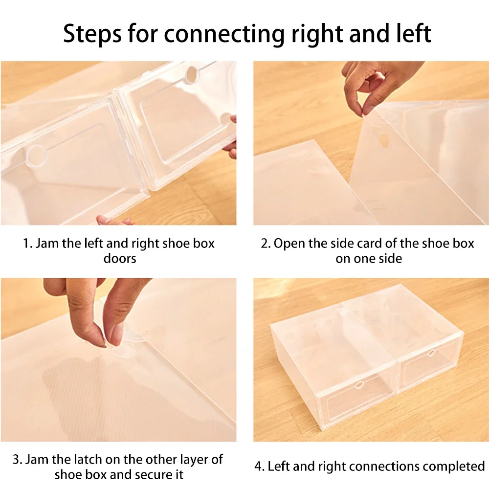 3-6pcs/Set Fold Plastic Shoes Case Thickened Transparent Drawer Case Stackable Shoe Boxes Box Shoe Organizer Containers Shoebox