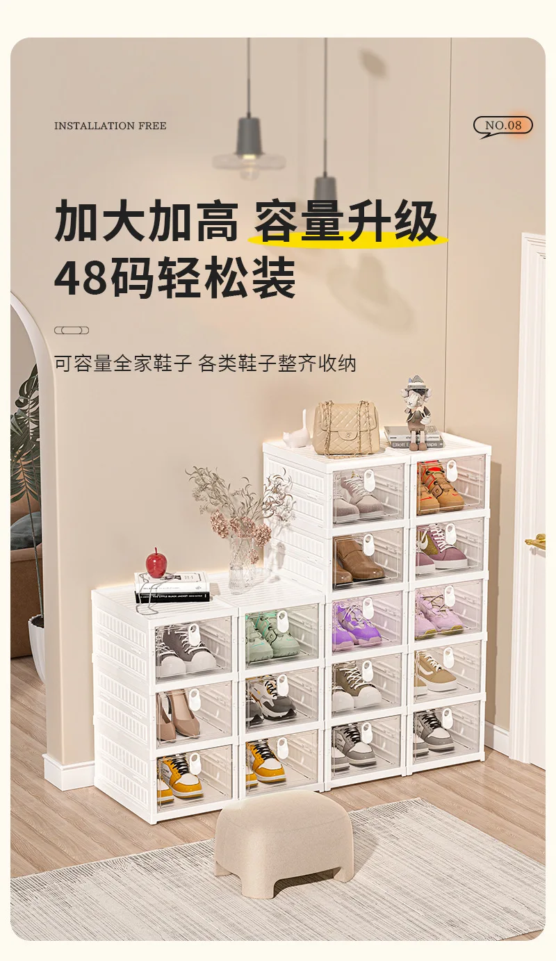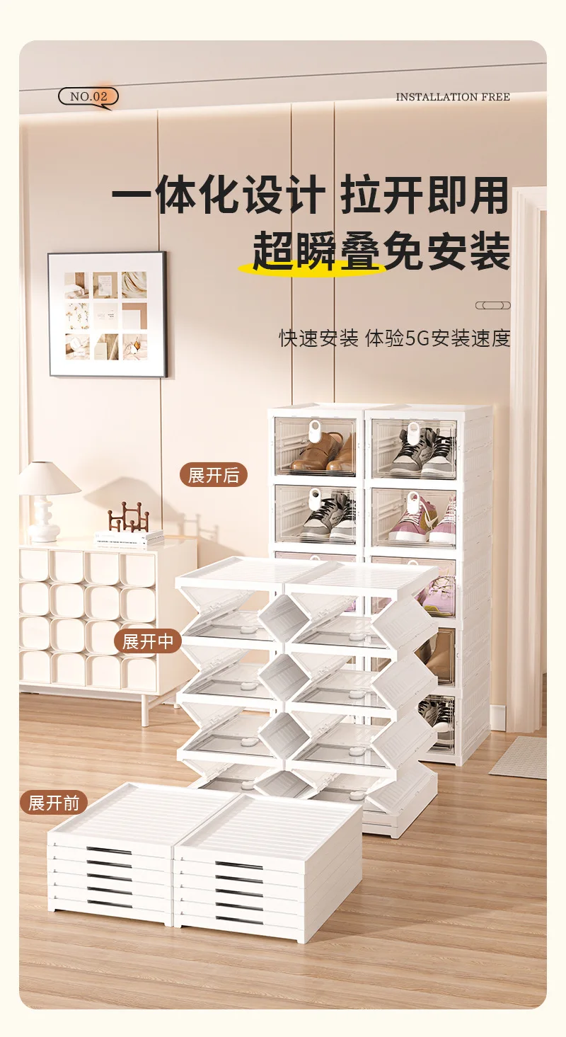 Free Installation Folding Shoe Box Storage Rack, Transparent Shoe Rack Storage Box, Multi-layer Integrated Shoe Cabinet