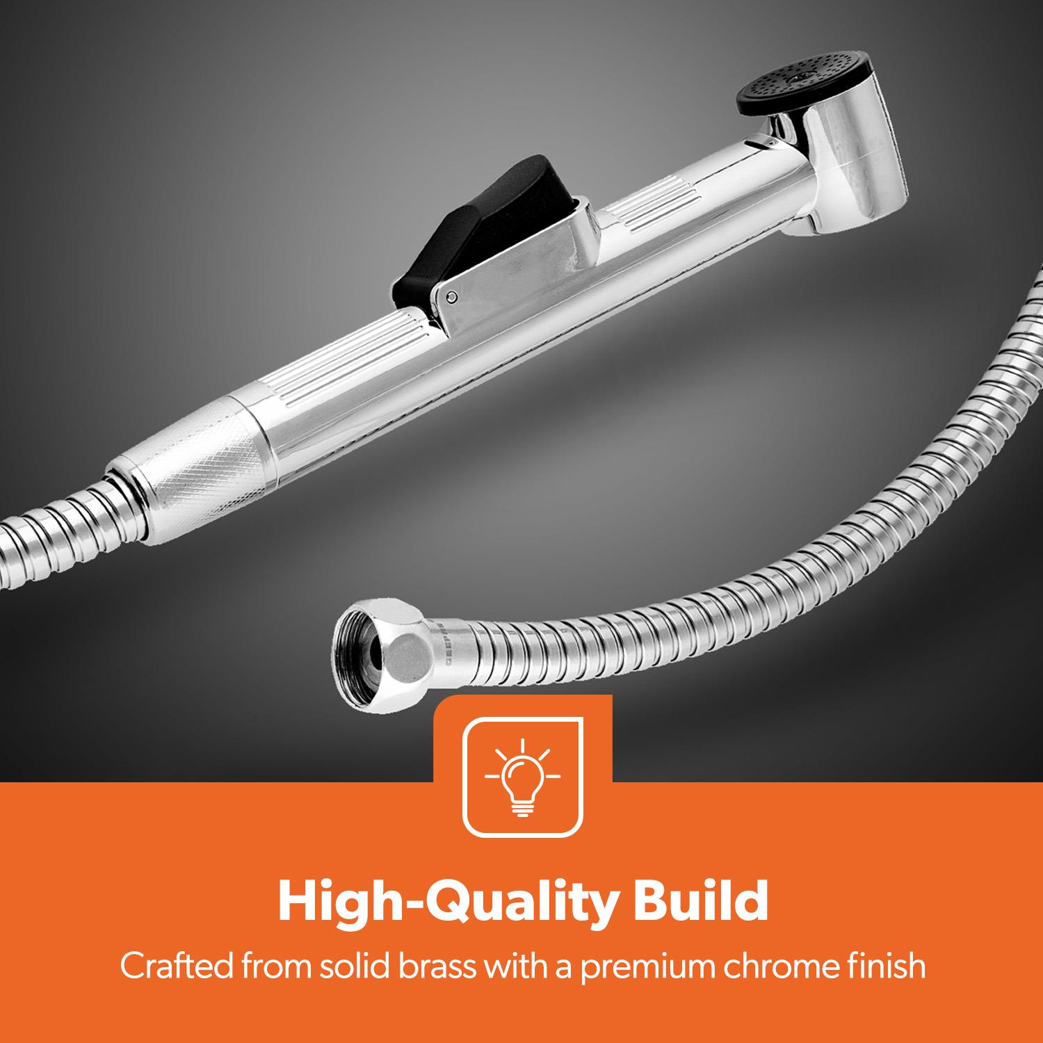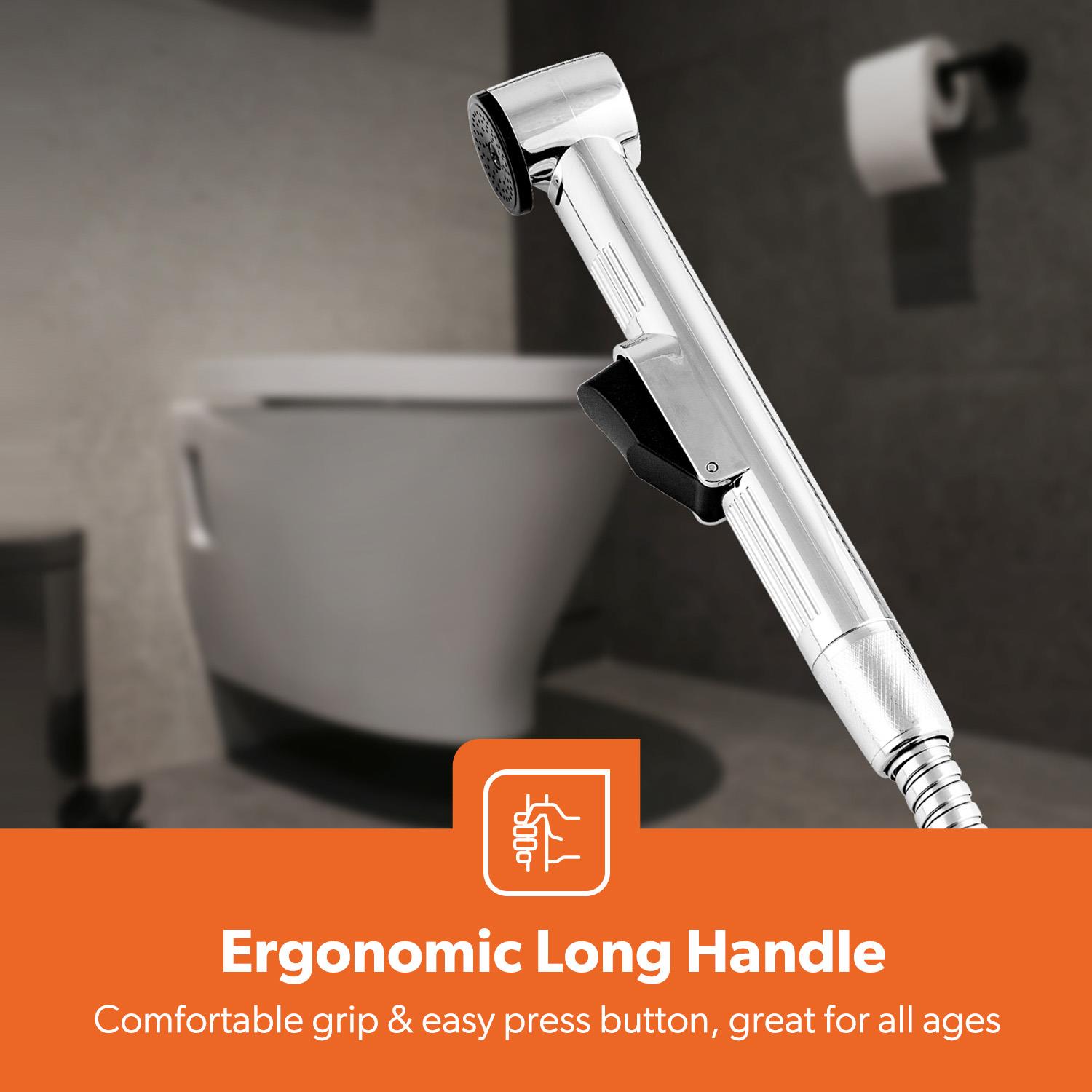 ✅ FINEST QUALITY FINISH, LONG HANDLE - This bidet is made with top quality chrome finished solid Brass Construction. For extra reach & soft press button for easy press for both children and elderly people.