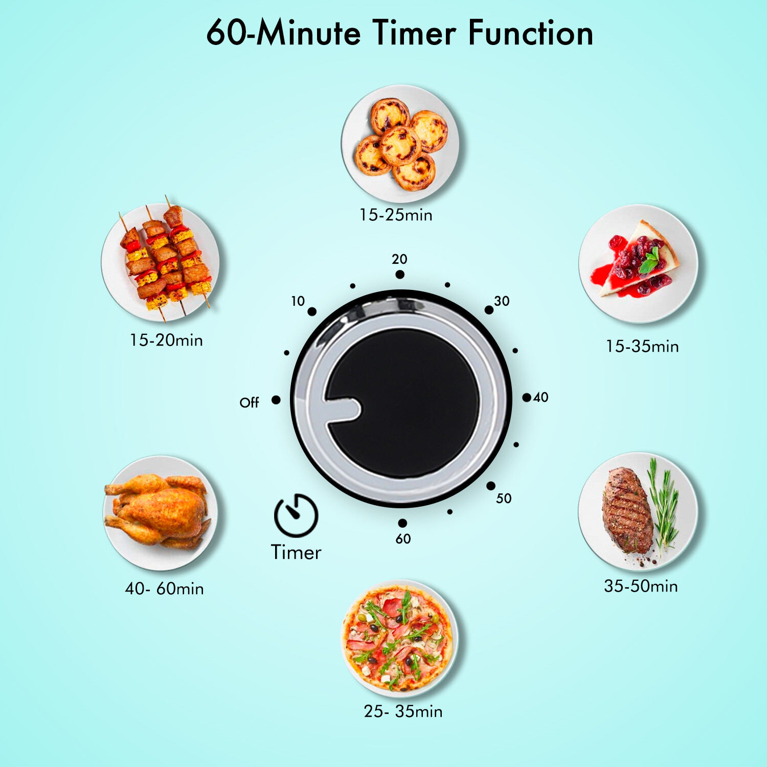 60 MINS TIMER AND SHUT OFF BELL - Equipped with a 60-minute timer function for added convenience, simply select the time & start cooking. At the end of the cooking process, you will be reminded of the corresponding call.