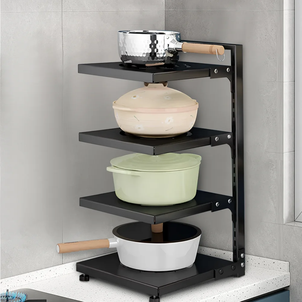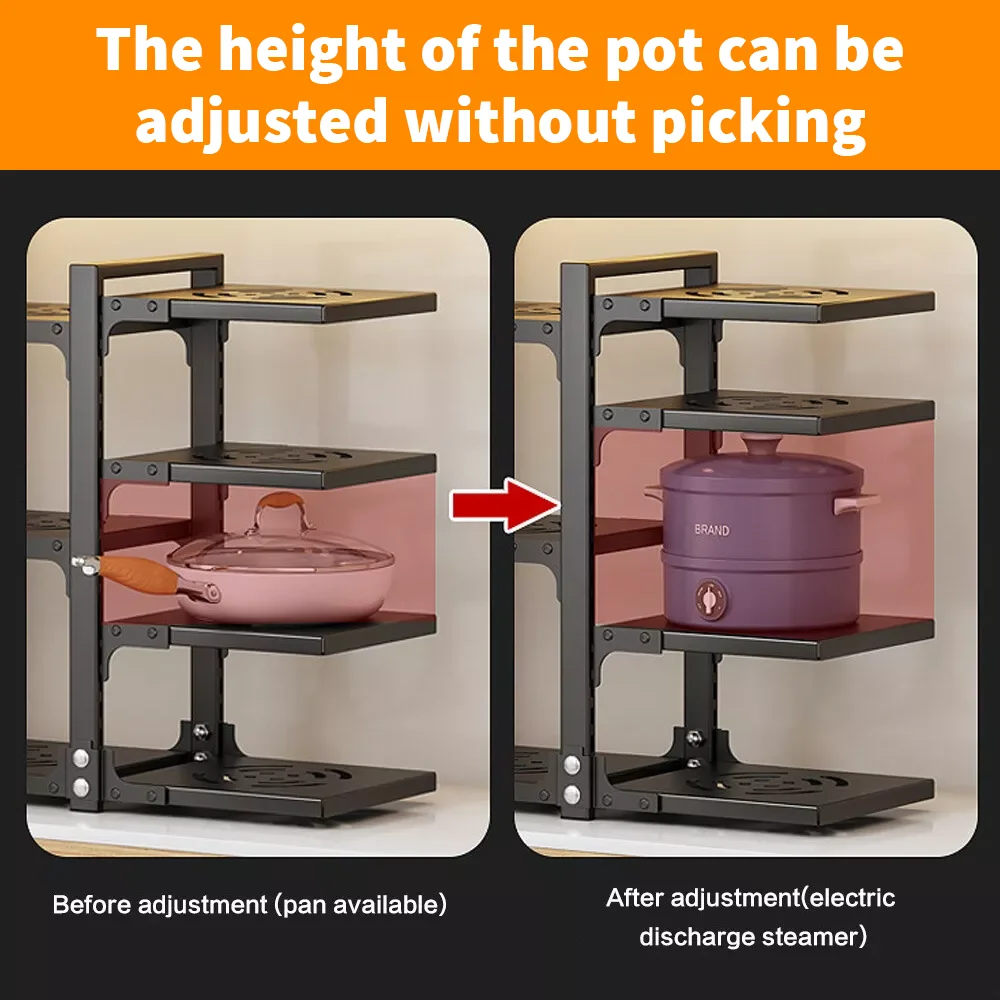 Kitchen Storage Shelves Pot Holder Multilayer Frying Pan Rice Cooker Seasoning Storage Rack Adjustable Organizer Rack